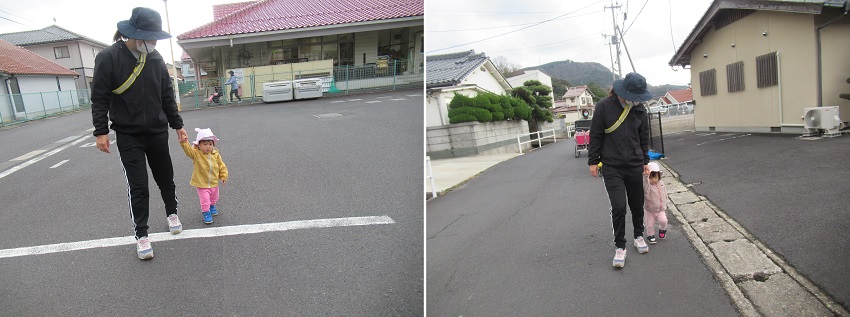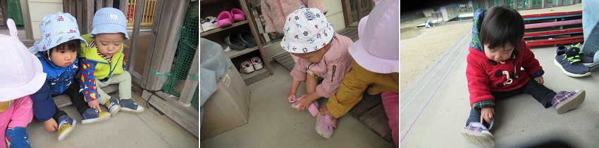 しかし、途中で雨がポツポツと降ってきて断念。靴を履いているお友だちは自分で脱ぐことを頑張りましたよ。
