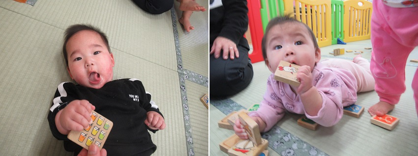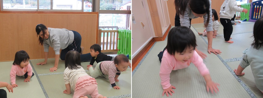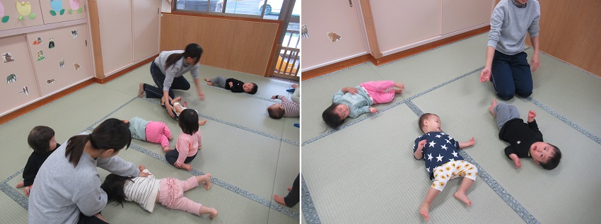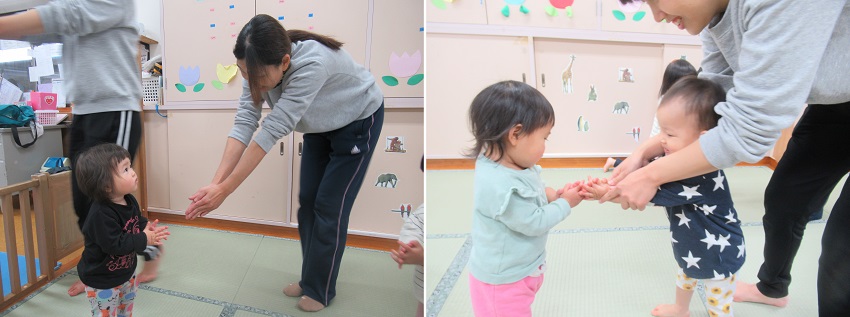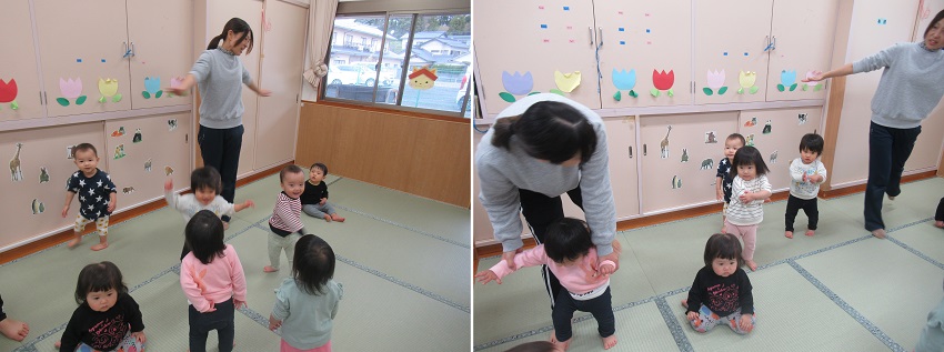 いちご組さんが出来るリズムあそびは限られていますが、しっかり体を動かすことが出来ました。