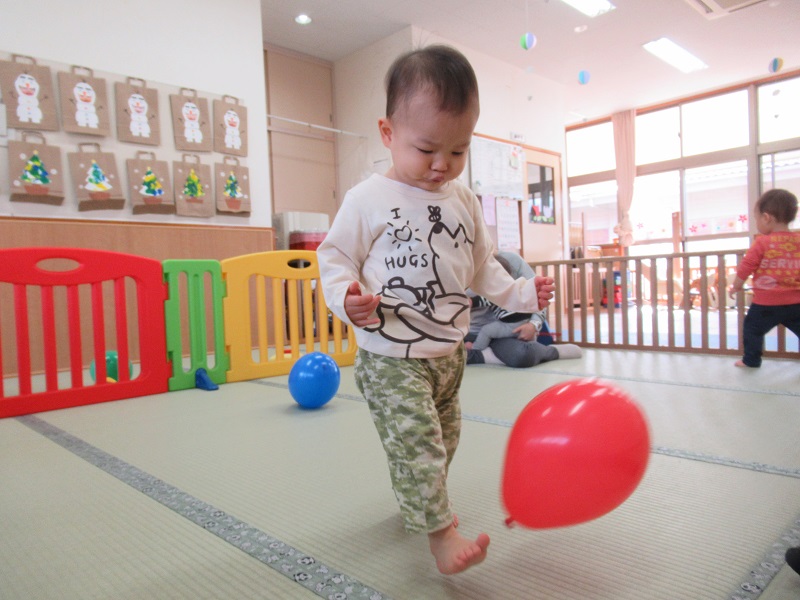 思う存分風船遊びを楽しむいちご組さんでした!