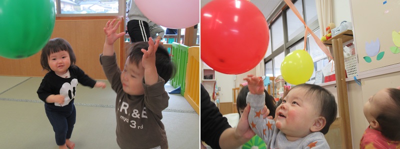 ゆらゆら揺れる風船に大興奮のいちご組さん!!