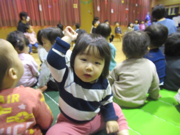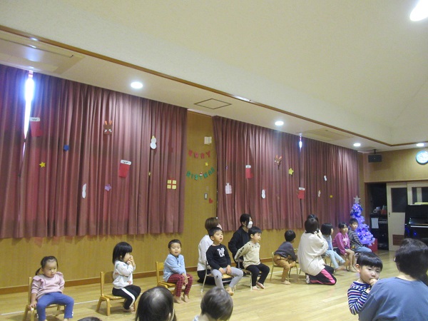 今日は誕生会とクリスマス会がありました。まずは12月生まれのお友だちをお祝いしました。