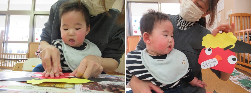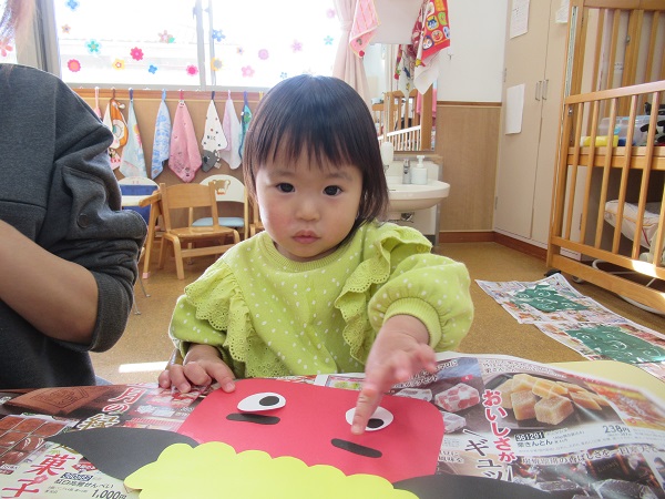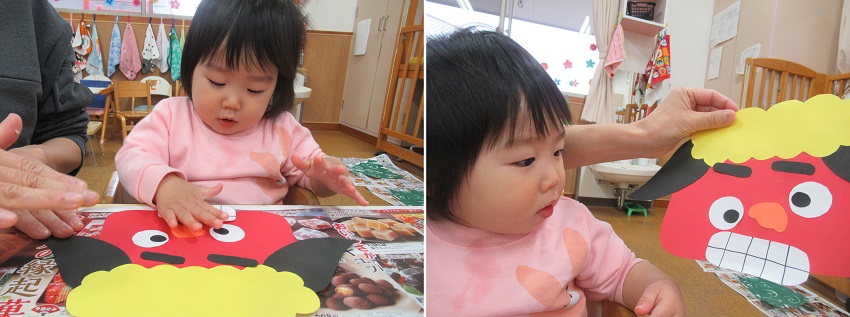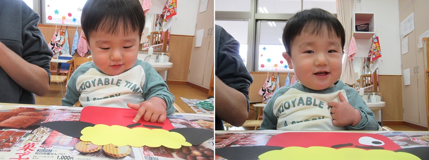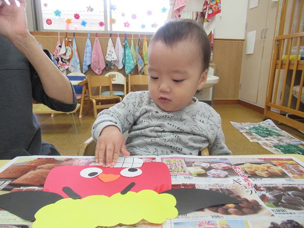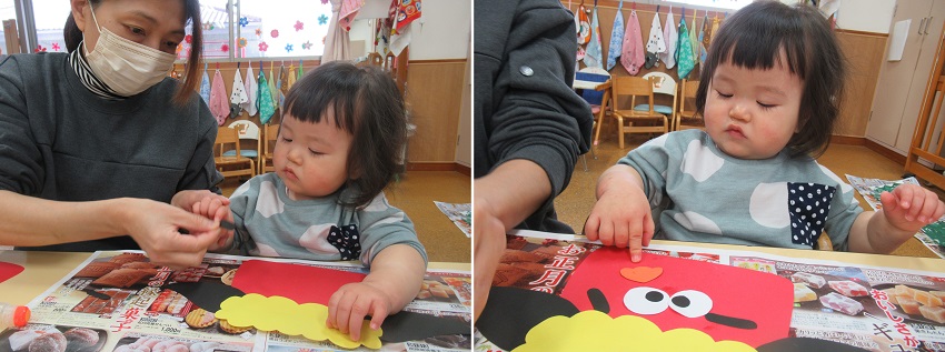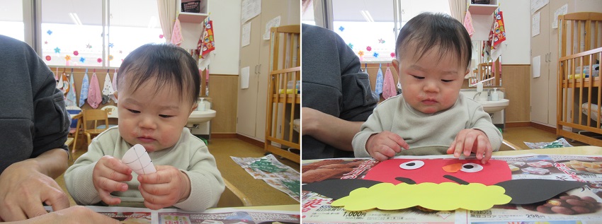 小さなお友だちも保育者と一緒に貼りました。