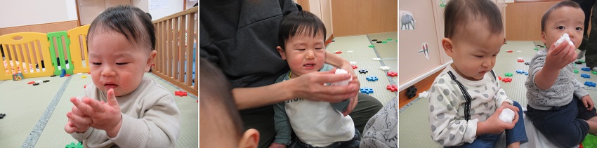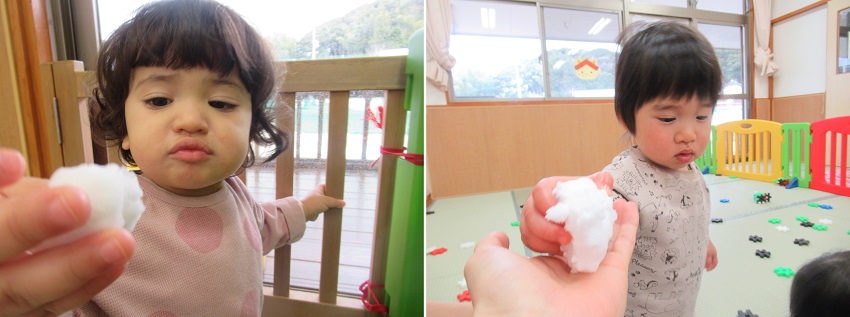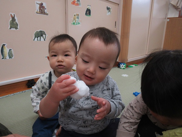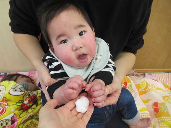 冷たい感触が苦手なお友だちもいました。