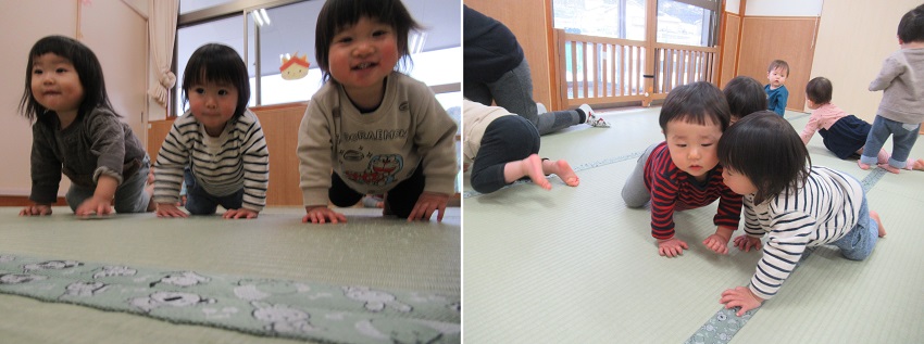 雪を触ったり、体を動かしたり、広告紙で遊んだり、もりだくさんな1日でした。来週もたくさん遊ぼうね♪