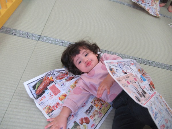 広告紙でも遊びました。