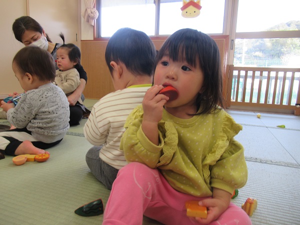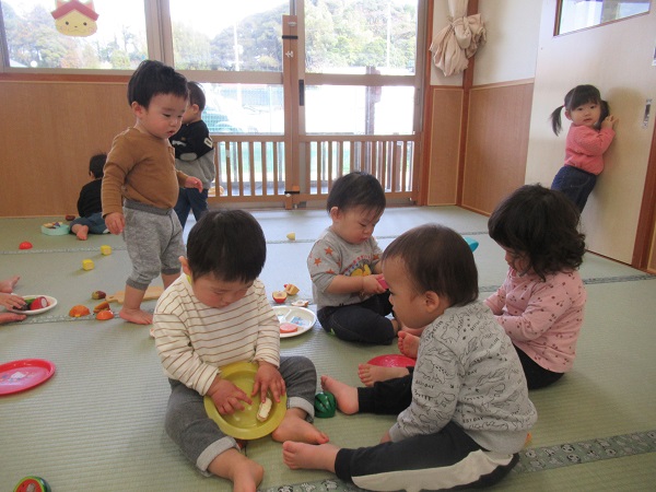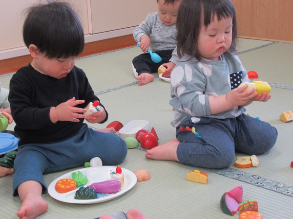今日は気温が低く、お部屋でおままごと遊びをしました。