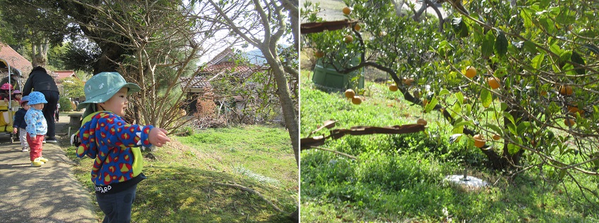 季節の花や果物を発見できた散歩でした!明日はいよいよなかよし遠足。楽しみだね♪