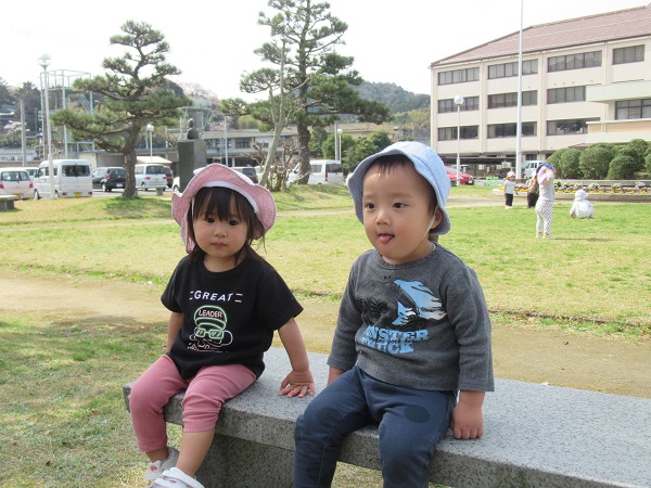 31日は雨の予報...晴れた日は散歩へ!ということで市民会館まで散歩に行きました。片道600mの距離を歩いて市民会館に着くと...「あっ!」と教えてくれました。