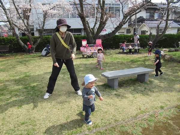 保育者と追いかけっこをしたりして楽しみました。