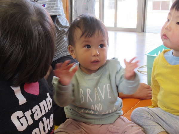 2021年04月22日 誕生会☆お部屋でゆったりと遊んだ後は...遊戯室で4月生まれのお友だちの誕生会がありました。保育者と一緒にインタビューを受けましたよ!お友だちに拍手のプレゼント■誕生会の後には保育者による出し物。今月は「キッチンドラマー」興味津々で見ていましたよ!来月も楽しみだね♪