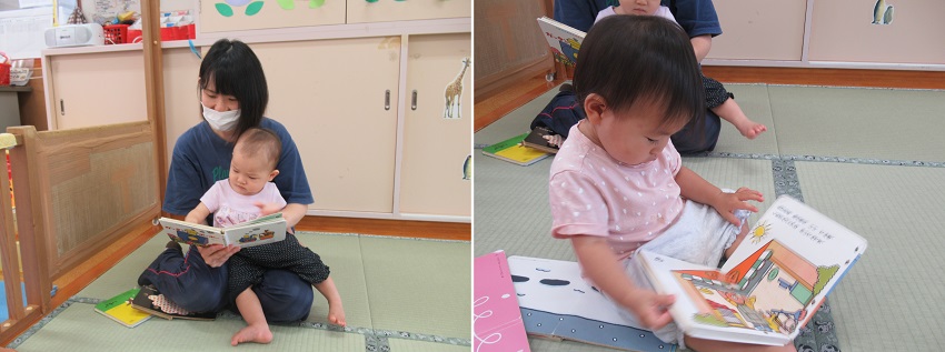 自分でページをめくる動作だけでも、脳の刺激にとってもよいそうです!お家でも絵本に触れ合う時間を持ってみて下さいね。