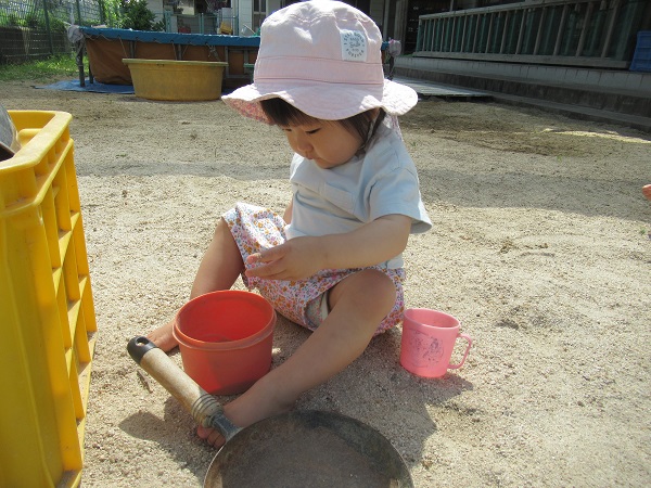訓練後は再び園庭へ。遊んでいると何かが遊びにきましたよ。