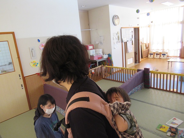 その間にいつでも逃げられるようにおんぶをして、待機しました。
