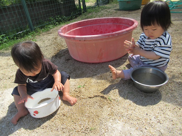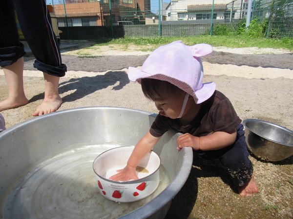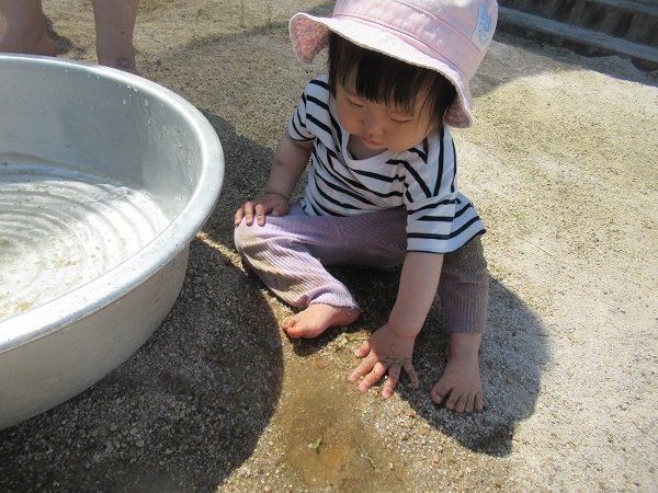 今日は2人のお友だちが、水や泥に触れて楽しむことが出来ましたよ☆