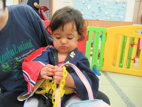 自分でよいしょ!よいしょ!!と袖に腕を通そうとするお友だちもいました☆