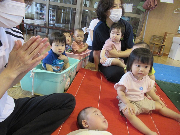 前で頑張っているお友だちを見つめたり、拍手をしたりしてお祝いしました■
