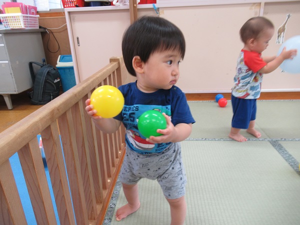お部屋に帰ってからはボールやふうせんで遊びました■