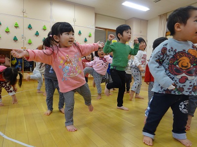 「山もりパワー」と「かおずもう」をノリノリで踊りました■