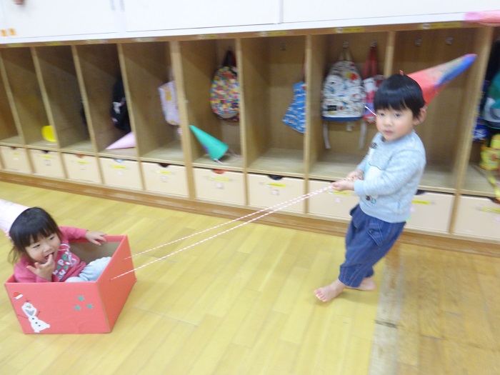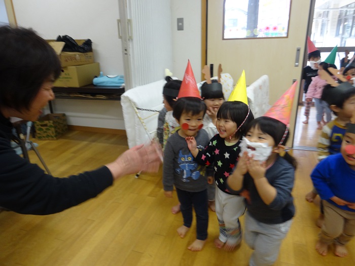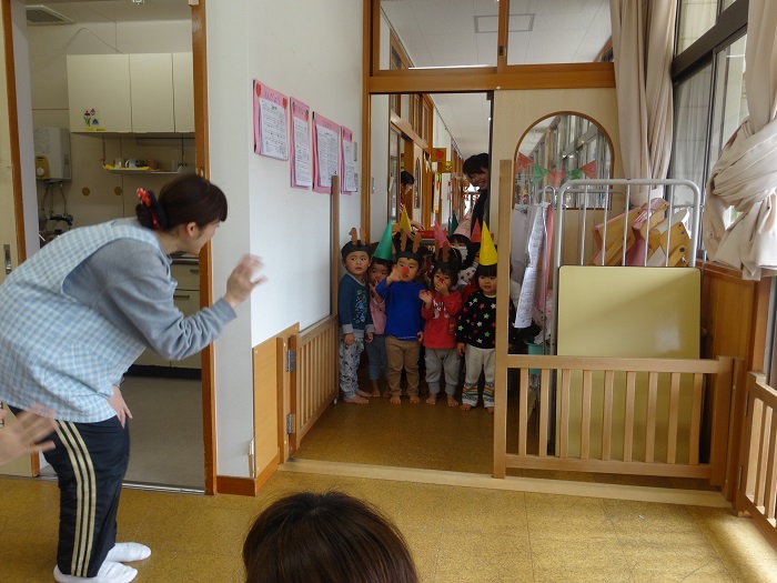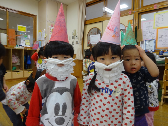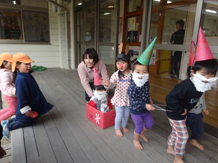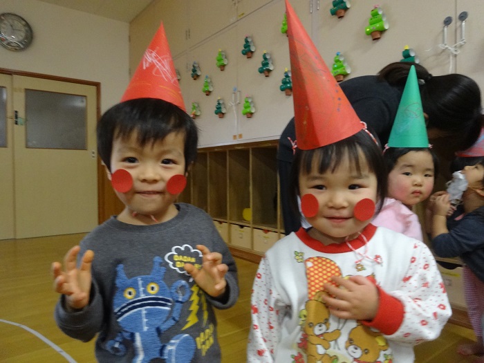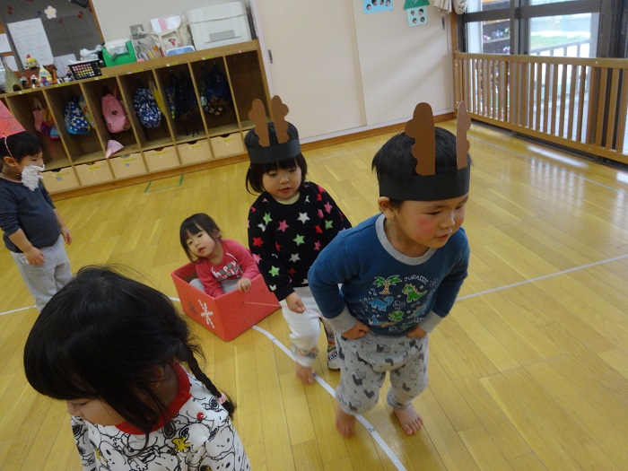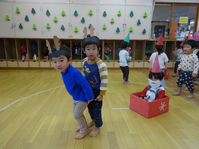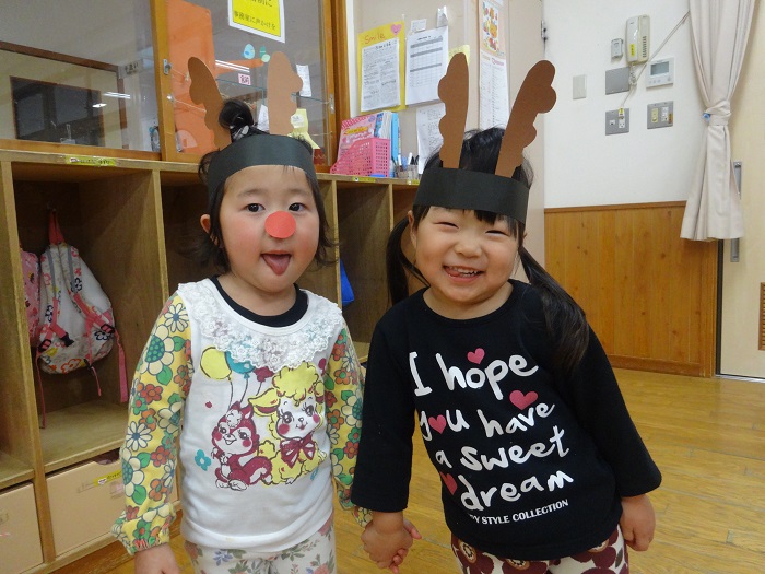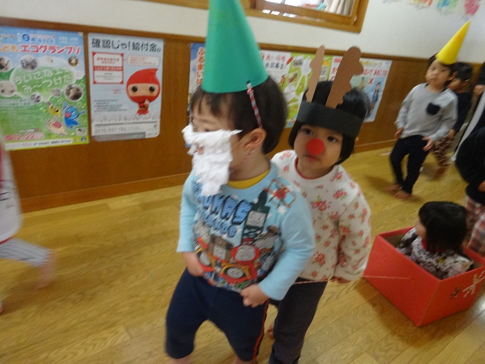 その後はサンタさんとトナカイになりきり、保育園内をお散歩しました■