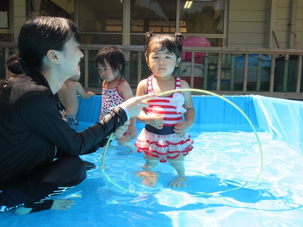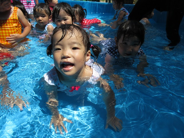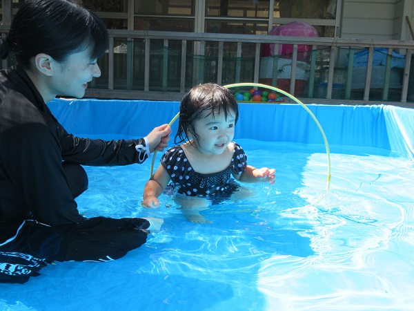 しっかり体操をし、準備万端でプールに入りました。