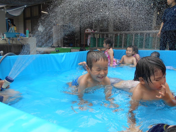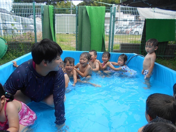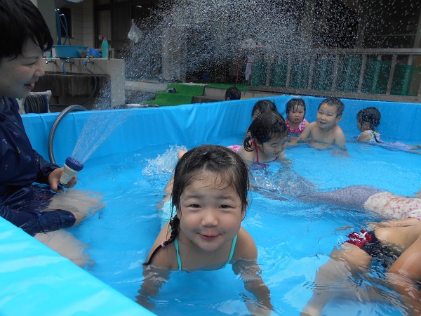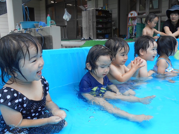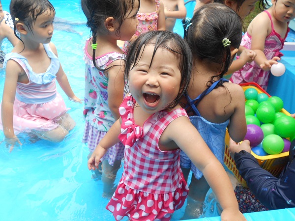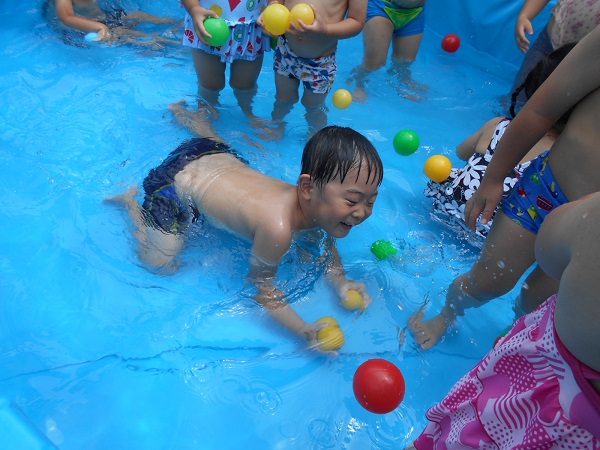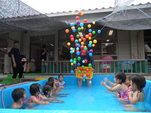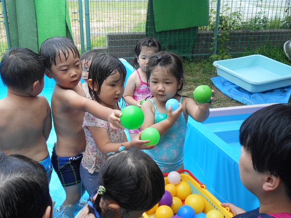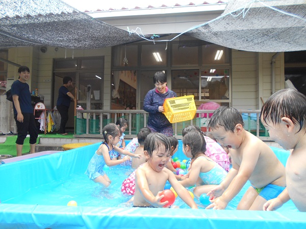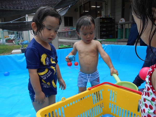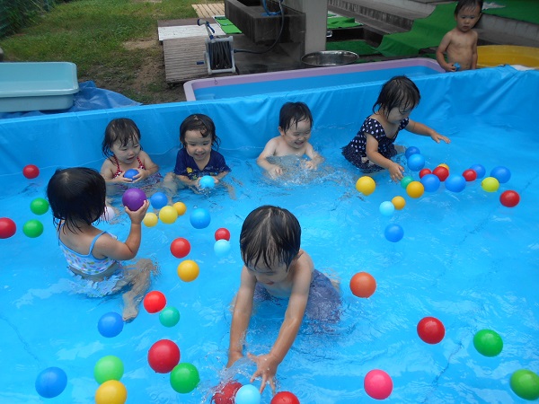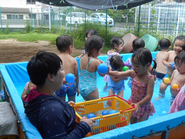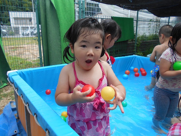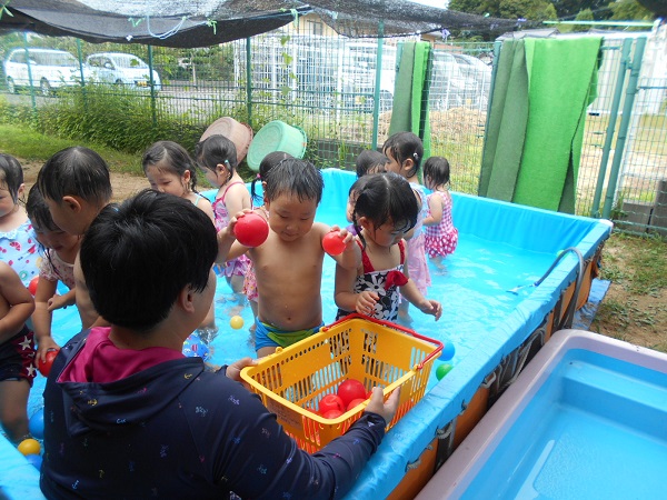 保護者の方から頂いたボールをプールに入れると大喜びのみかん組さん■