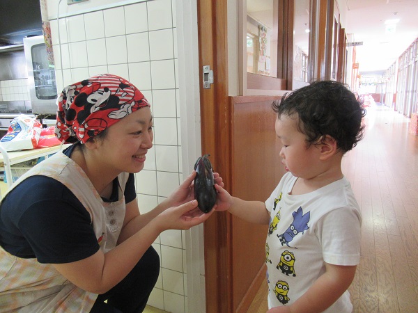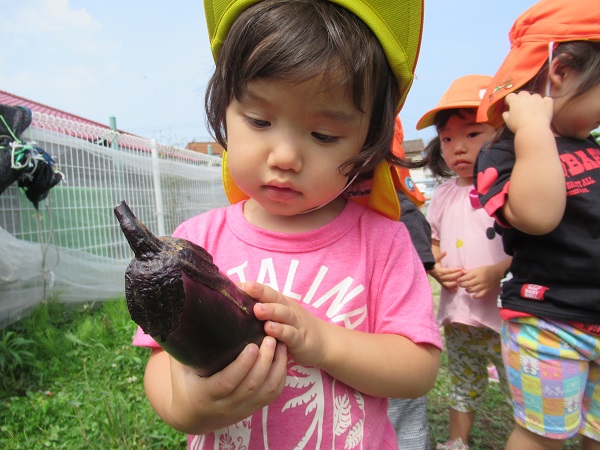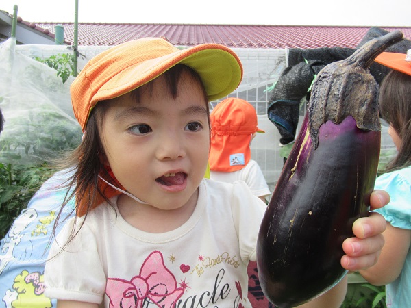 その後は野菜の生長を見ましたよ。なすびが立派に出来ていました!