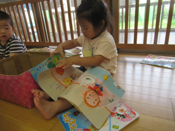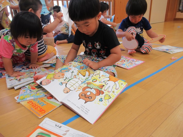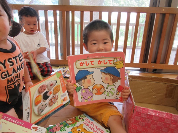 保育者の真似をして読み聞かせをしてくれました