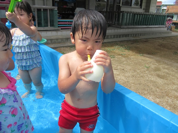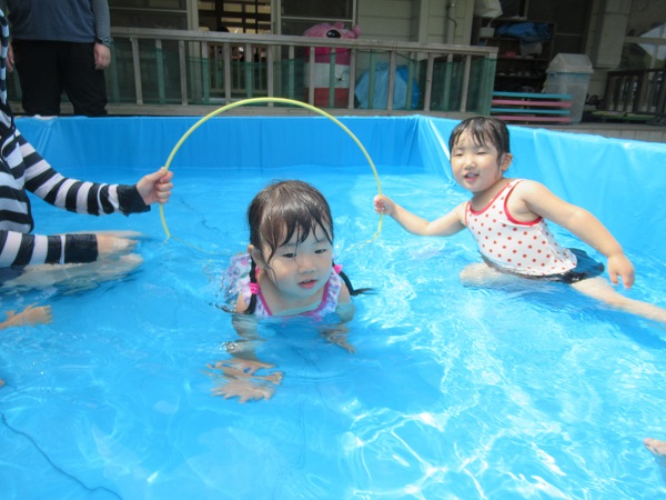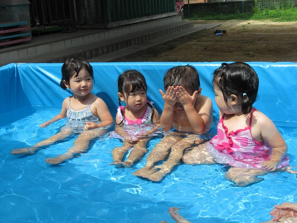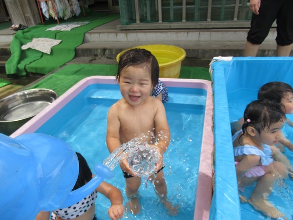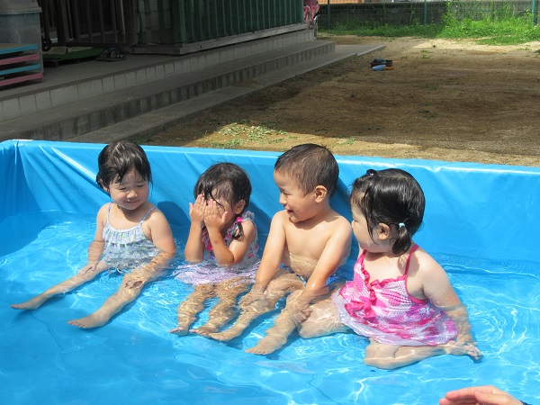 お日様がキラキラ輝く今日は、プールに入ってたくさん遊びましたよ☀