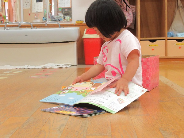 泥んこ遊びが出来ないお友だちは、お部屋の中で絵本を読んだりブロックを楽しんだりして遊びました。