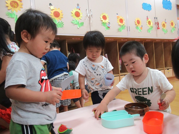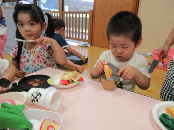 包丁を使ったり、食べる真似をしたりしている子も■✨