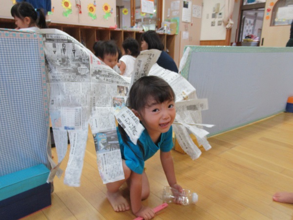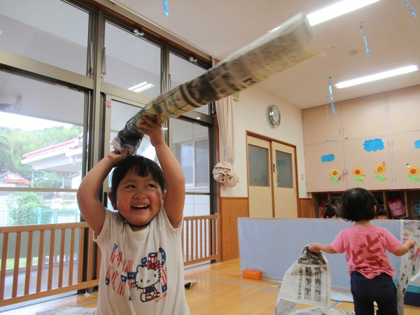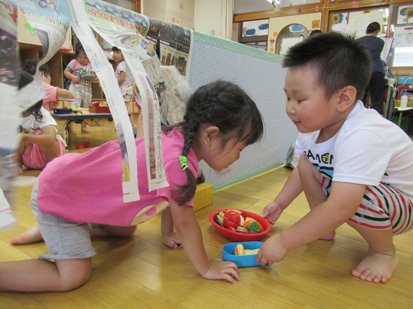 リハーサルを見た後はおままごとや新聞紙遊びをしました。