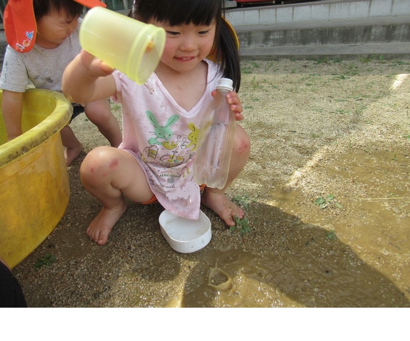 水たまりを作ったり、ごちそう作りをして楽しみました!