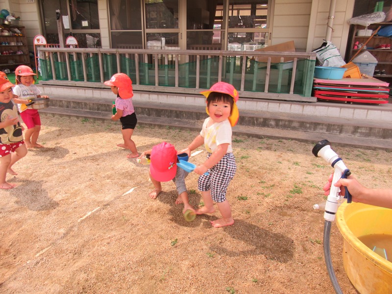 保育者がシャワーを向けると・・・