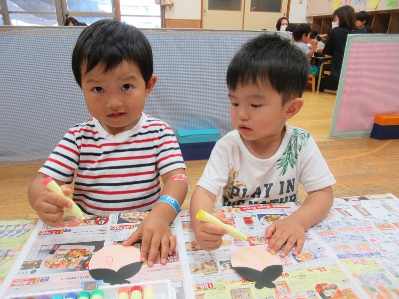 みんなに「織姫と彦星にお顔がないけどどうする?」と質問すると「描く!」と教えてくれるお友だちもいましたよ■