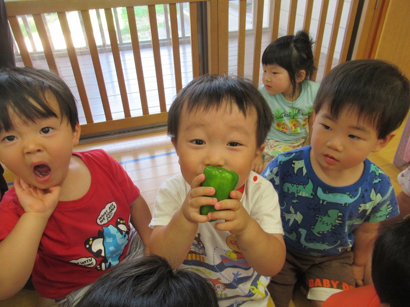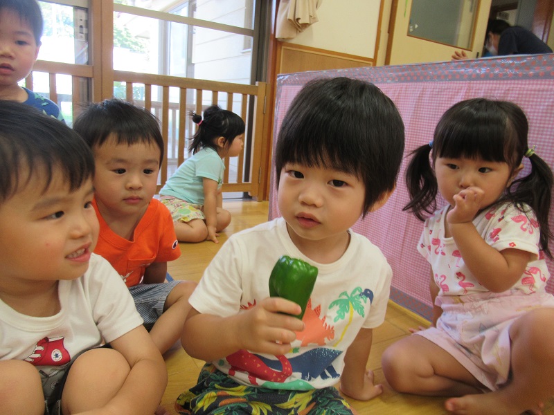 スタンプをする前に野菜を触ってみました■