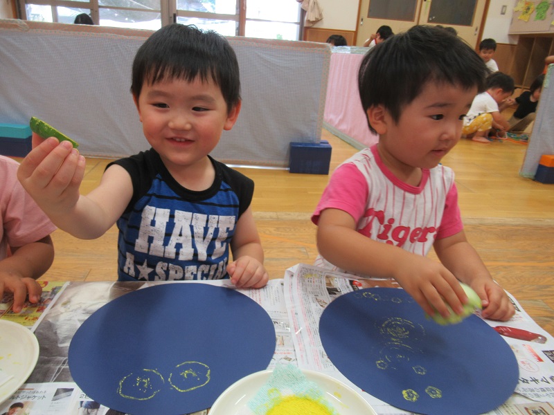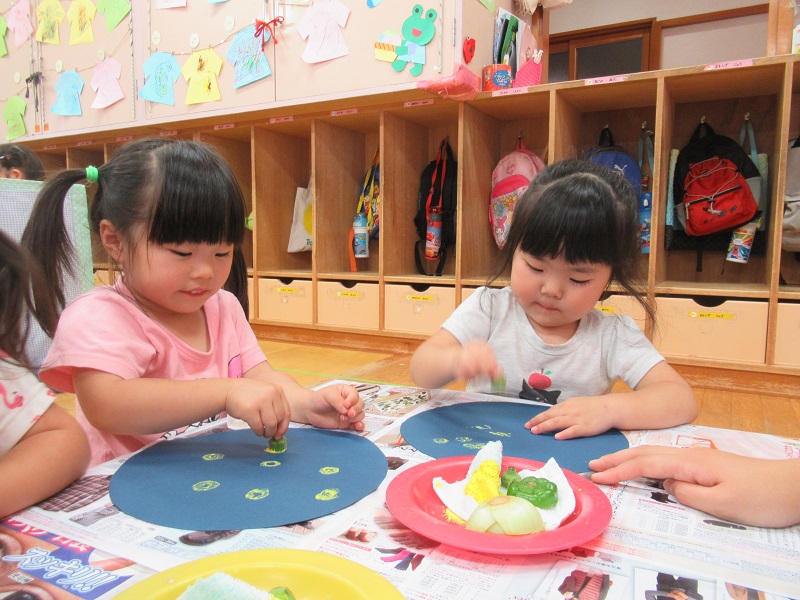 今日は野菜スタンプをしましたよ!