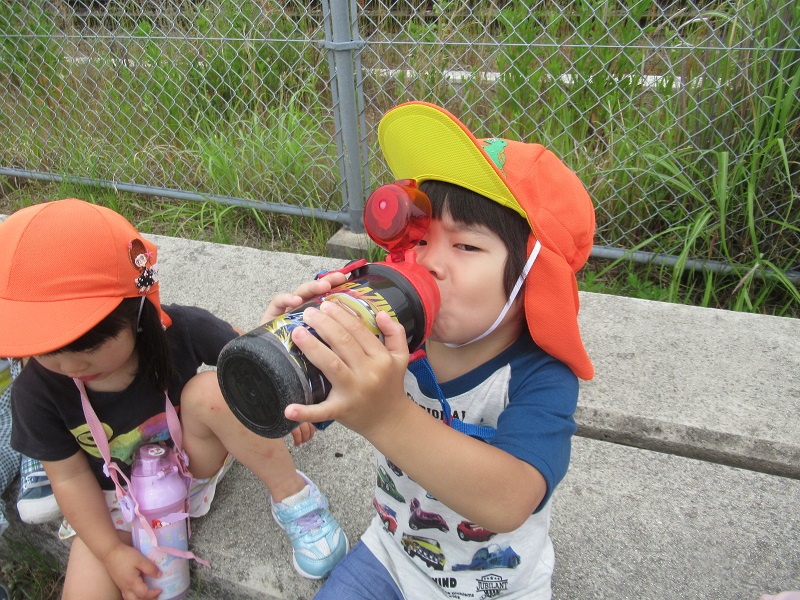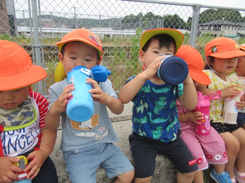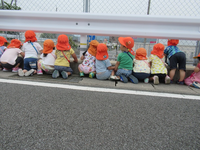 2020年06月03日 おーい!!みんなの大好きな汽車や車がよく見える場所に散歩に出掛けました■目的地へ到着!まずはお茶休憩☕働く車に「おーい」と手を振りました■この後ろ姿がとっても可愛いです♡車を見ているとガタンゴトンと音が・・・車が来ないことを確認して汽車にも「おーい」と手を振りました!帰園してからシャワーをしてスッキリ!給食を大きなお口で食べましたよ!「おいしーい■」明日は何して遊ぼうかな?