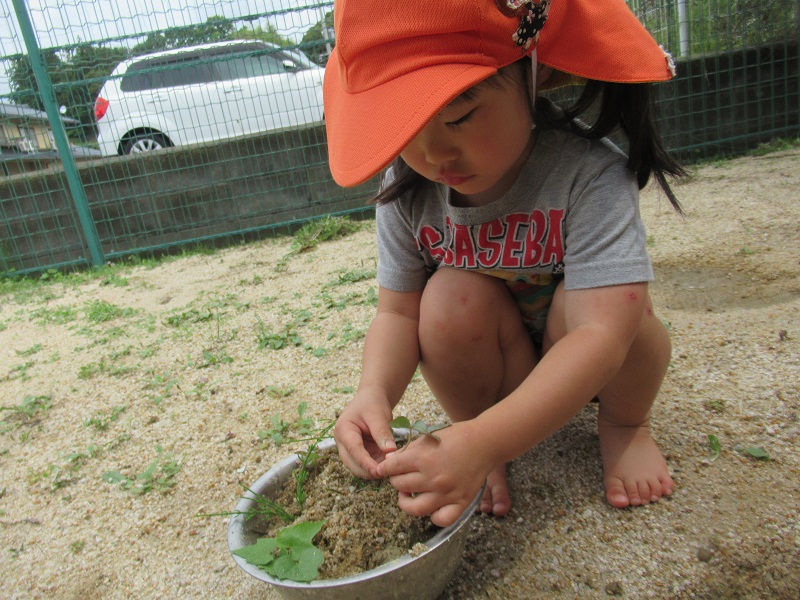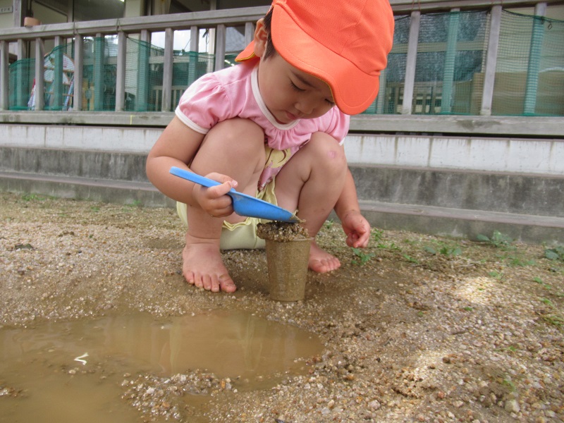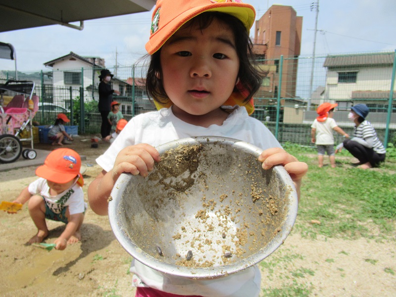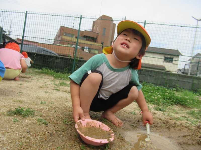 上手に水をすくい思い思いにごちそう作りを楽しんでいました。