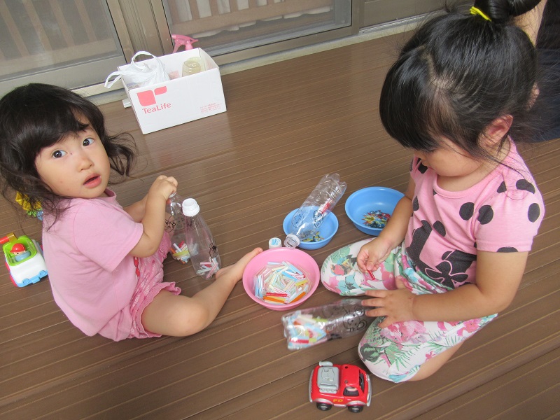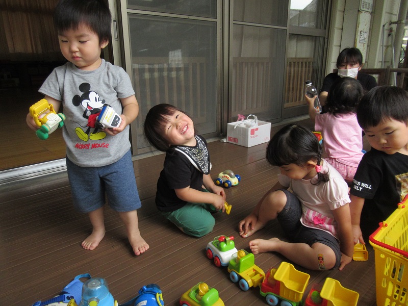 お外で遊べなかった子はテラスで車やストロー落としをして楽しみましたよ。