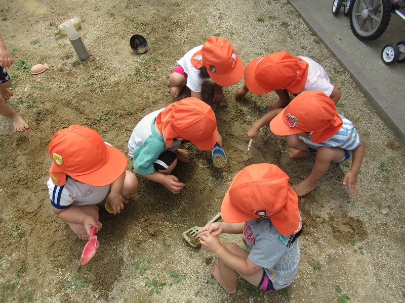 「今日は外で遊べるよ~」と言うと「やったー」と大喜びのみかん組さん☺