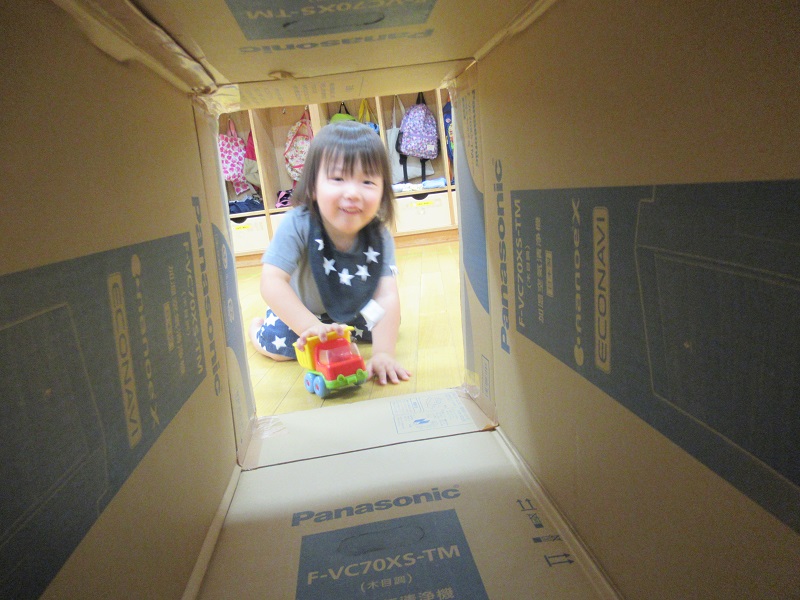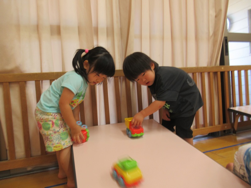 泥んこ遊びが出来ないお友達は車の玩具で遊びました!