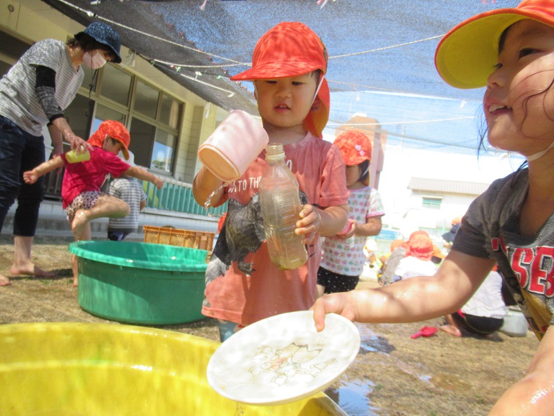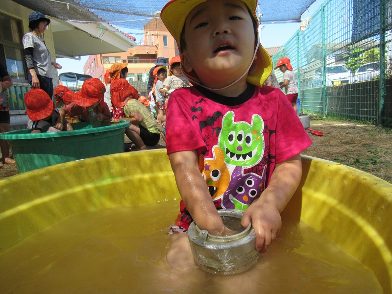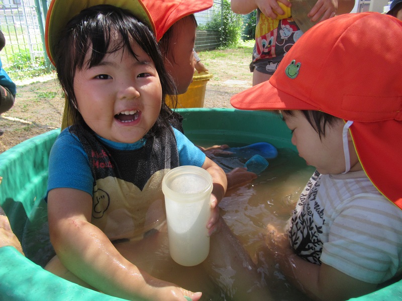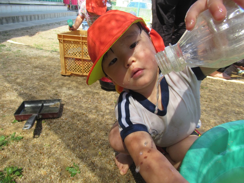 ペットボトルの中に水を入れて楽しんでいる子もいました!