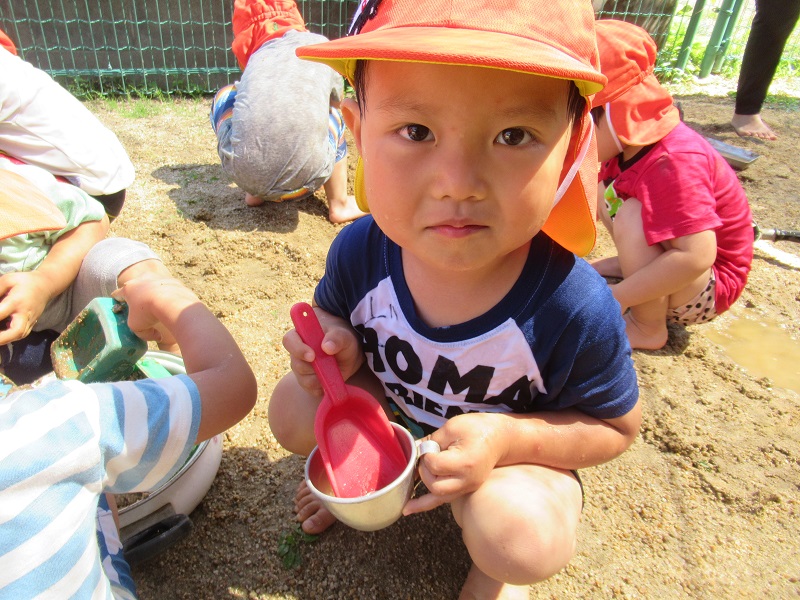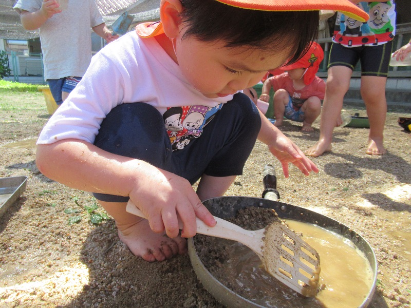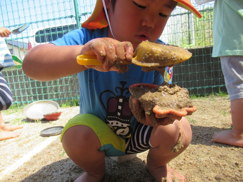 今日は泥んこ遊びをしました。