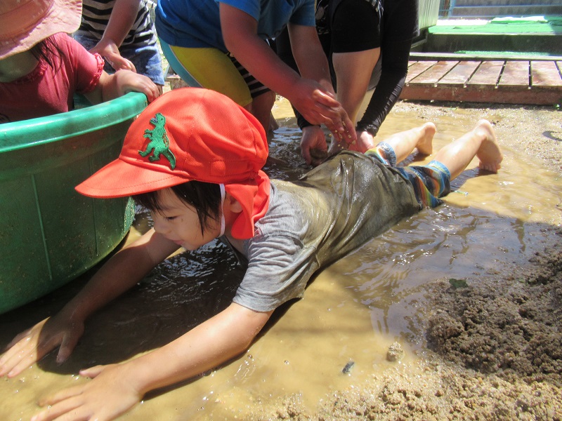 身体全身をつかって泥んこ遊びを楽しんでいましたよ!