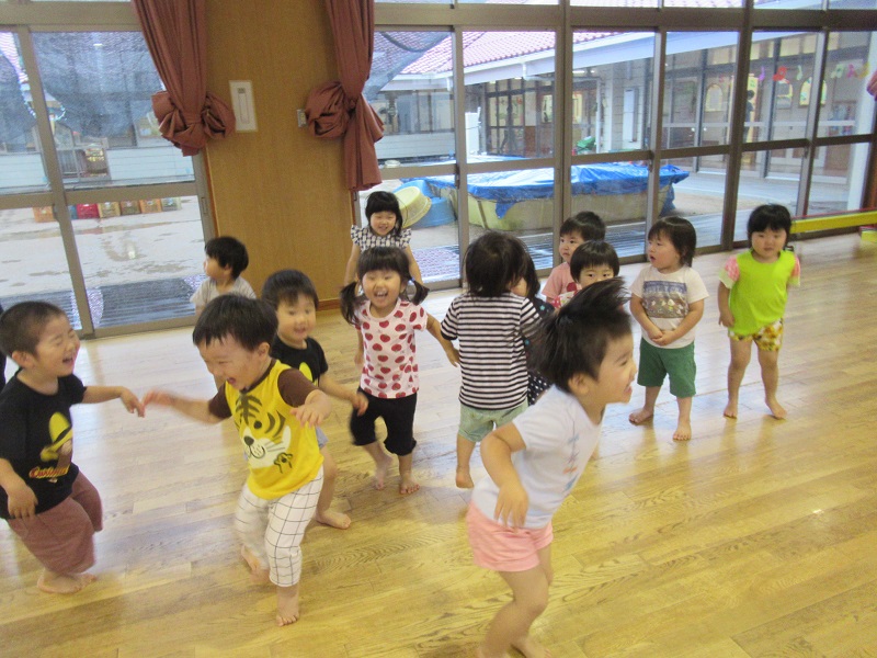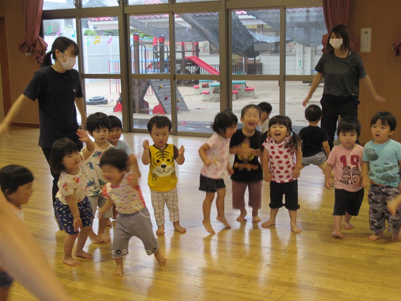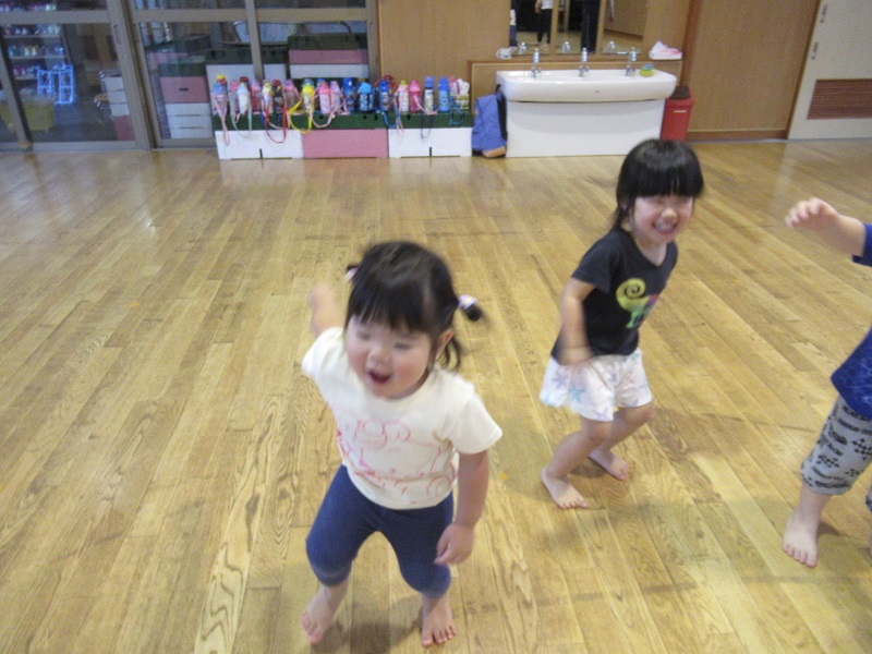曲が流れると・・・最初は戸惑っていたお友達も保育者と一緒に踊ったりして楽しんでいましたよ!