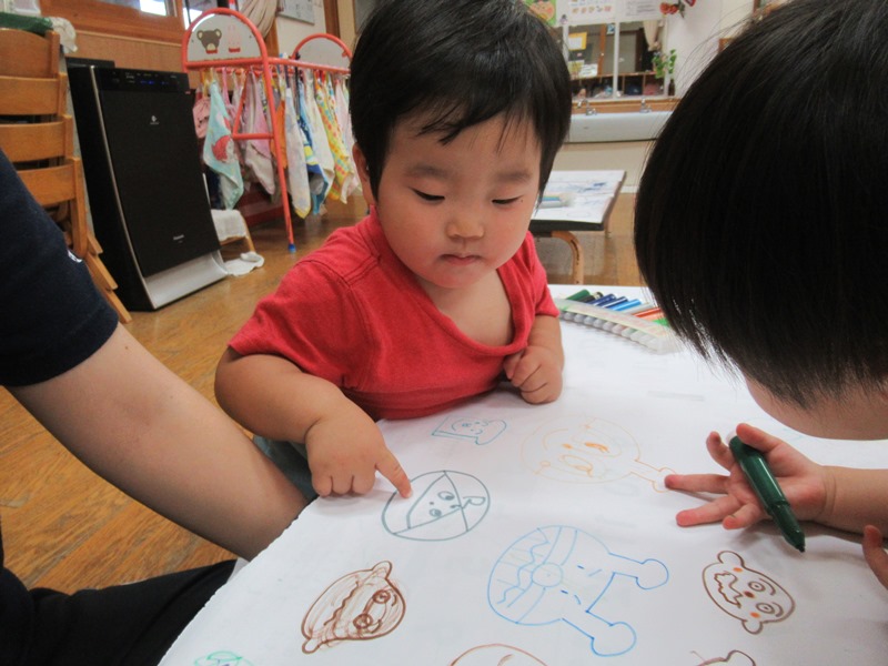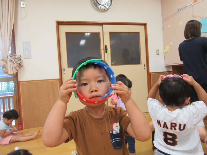 ホックブロックを丸にして...ばあ!!穴から顔を出しているお友だちもいました