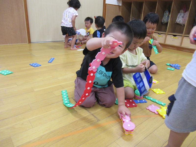 「繋げたらヘビみたいになった!」と保育者に伝えてきてくれましたよ■