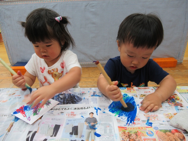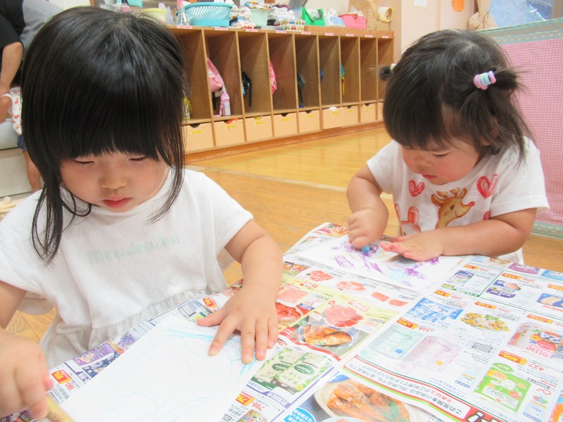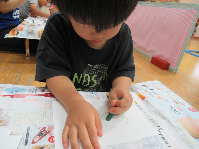 ○や△・や/の様々な模様が描けました。とっても力強く描いていましたよ。