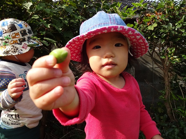 椿の花も・・・❤きれいな花なのに、なぜか「きもちわるい!」と言いながら拾っていました(笑)