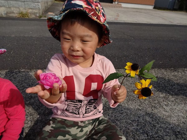 「お花たべる~?」と優しく花を差し出すみんな・・・